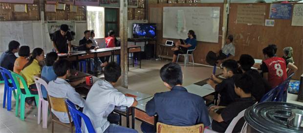3) El centro de formación profesional STTC: Se trata de un centro de formación profesional que ya hace tiempo que existe y al que Colabora Birmania construyó el edificio actual y proporciona profesores voluntarios. Suele haber voluntarios dando cursos. Narcís está dando ahora mismo un curso de mecánica a varios jóvenes birmanos, mientras que Abel y María dan un curso de fotografía.