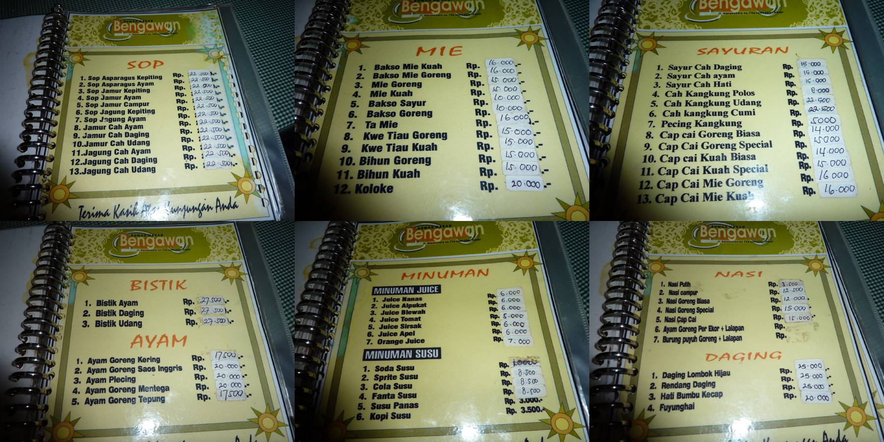 - Comida: Un plato de Nasi Goreng, arroz frito con pollo o verduras, cuesta unos 15.000 RP (1,2 €), un zumo unos 6.000 RP (0,60 €). Que mejor que un menú de un restaurante normal de Bali para haceros una idea.