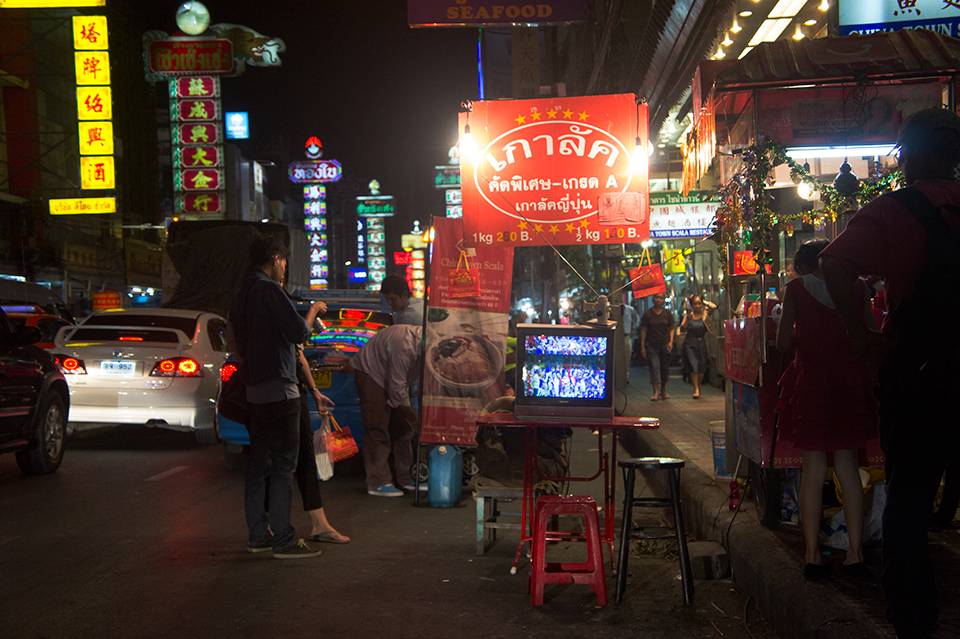La calle de Yaowarad es la más típica de Chinatown, y por la noche se transforma en un festín de aromas y sabores repleta de todo tipo de negocios. Lo que durante el día son tiendas de oro, por la noche los puestos de comida callejera de apoderan del barrio. Allí podréis comer prácticamente de todo y a muy buen precio.