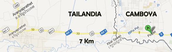 Si por horarios o por lo que sea, no podéis tomar este autobús, entonces podéis hacer lo siguiente: Primero tendréis que llegar al pueblo fronterizo de Tailandia, llamado Aranyaprathet (4-5 horas), a unos 4km de la frontera).