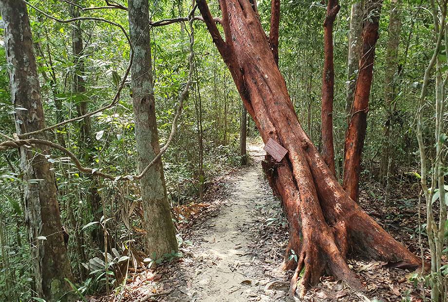 Los primeros 500 metros de la excursión son bastante planos y con una ligera subida. Rápidamente el camino se inclina y el desnivel es bastante grande. Hasta casi la cima es un no parar de ganar altura a base de piernas. El camino está, por suerte, casi siempre cubierto de sombra, pero la humedad es muy alta con lo que sudaréis como nunca. Una vez uno se acerca a la cima la vegetación empieza a cambiar, el camino se abre a la luz y nos encontramos con más rocas. Desde la cima hay varias rocas a las que podemos subirnos para admirar la belleza de la zona.