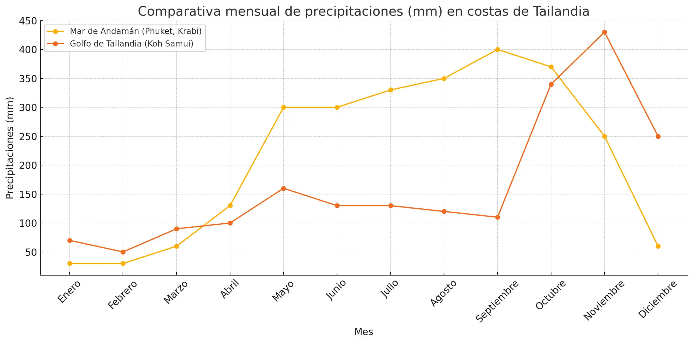 Aquí te mostramos una comparativa del tiempo en Tailandia y sus precipitaciones, que seguro te ayudarán a planificar tu viaje.