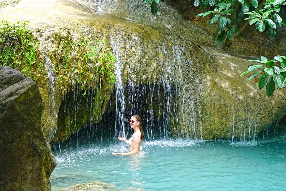 ► El Parque Nacional de Erawan: Una de las estrellas de la corona de Kanchanaburi. Las cascadas de Erawan son un bonito Parque Nacional de Tailandia en el que podréis bañaros en unas piscinas naturales de aguas turquesas. Si decidís recorrer todo el camino al lado del río, llegaréis a la famosa cascada cruzándoos por el camino con varios monos y macacos. El agua de la espectacular caída principal sigue su curso formando piscinas naturales en siete niveles sucesivos, junto a un sendero que permite andar admirando la belleza de este lugar paradisíaco y elegir el rincón que más guste para darse un chapuzón. Pero como es común la gran belleza de las cataratas se cobra su peaje: bastantes autocares turísticos acuden aquí todos los días, por lo que suelen estar bastante llenas de turistas, aunque el río es bastante largo y es incluso posible encontrar algún lugar donde bañarse en solitario. A pesar de que la catarata es, con diferencia, la atracción más popular del Parque, quien lo desee también tiene otras alternativas, como visitar la cueva de Tham Phra That, recorrer alguno de los senderos que se adentran por los bosques del Parque o contemplar las vistas de la presa de Si Nakharin. Las cascadas abren de 8h a 16:30h y el precio de entrada es de 300THB. Queda a unos 65 kms al noroeste de Kanchanaburi y para llegar, la opción más fácil y rápida es ir en moto o en coche, aunque si no queréis conducir también podéis coger el autobús 8170 que sale de la estación de autobuses de Kanchanaburi a las 08:00, 09:00, 10:00, 11:15, 13:00, 14:30, 16:00 y 17:40 (horarios sujetos cambios). Cuesta 60 THB y tarda aproximadamente una hora y media. Para volver el último autobús sale de las cascadas a las 16:30h. Es mejor ir temprano para evitar las aglomeraciones.