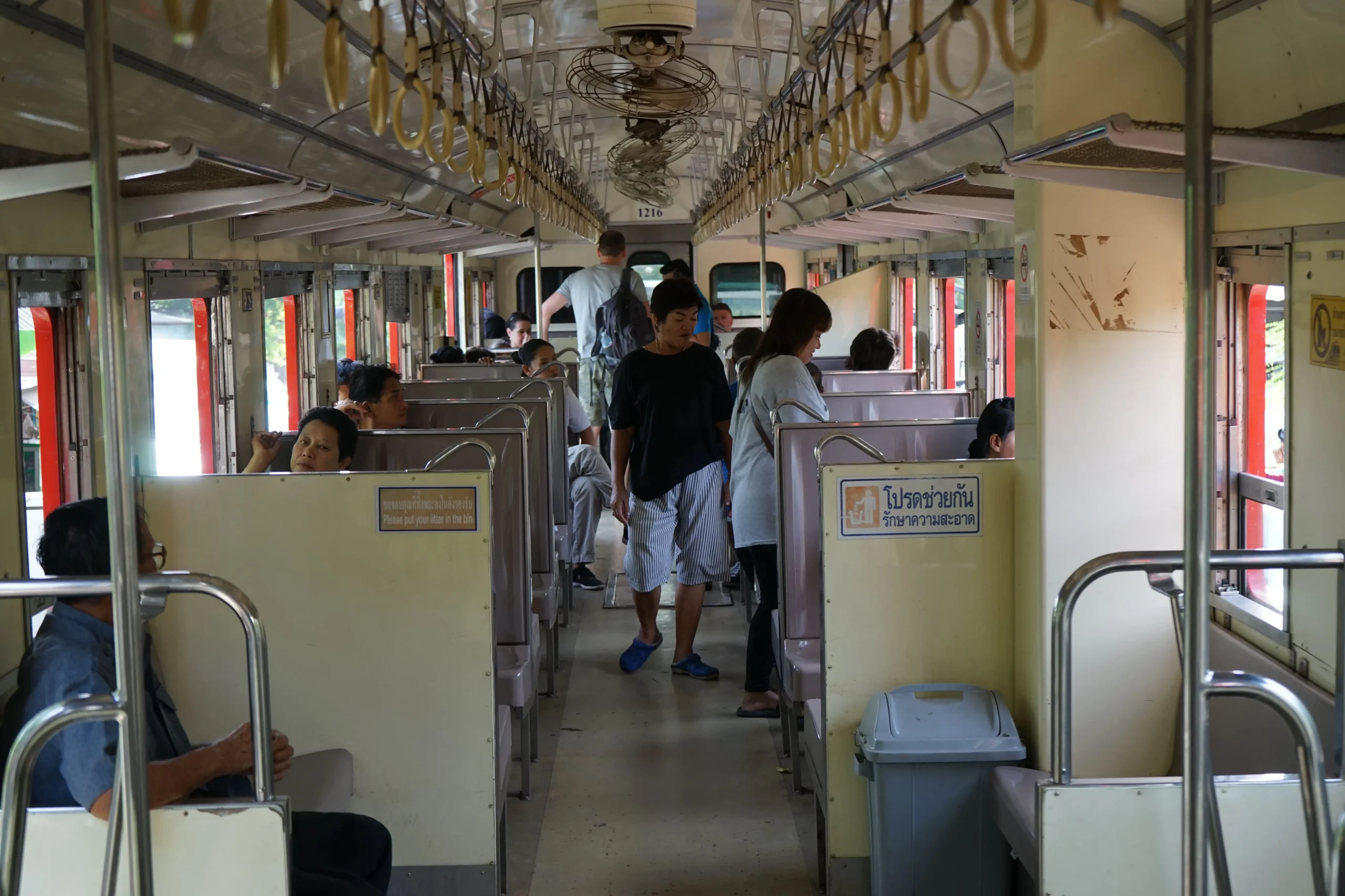 Una forma pintoresca (aunque lenta) de llegar. Los trenes salen desde la estación de Thonburi (no desde Hua Lamphong), normalmente a las 7:45 h y 13:55 h. El trayecto dura unas 3 horas y cuesta solo 100 THB. Es el tren que cruza el famoso Puente sobre el Río Kwai y sigue hasta las cascadas Sai Yok Noi.