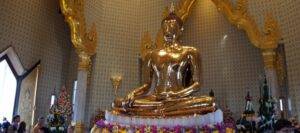 Un buda de puro oro que data del siglo XV y que encontraron escondido dentro de un buda de piedra. Se cree que fue escondido para evitar que los birmanos se lo llevaran cuando invadieron el Reino de Ayutthaya. Está situado dentro de un templo de una arquitectura interesante. Está en Chinatown.