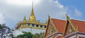 Un pequeño monte con un templo y una estupa (como una cruz en la religión cristiana) gigante arriba. Ofrece unas vistas estupendas de la parte antigua de la ciudad, aunque también se puede apreciar la zona de los negocios (rascacielos). Mejor ir temprano o tarde ya que debes subir 300 escalones y si el sol aprieta puede ser duro. Muy recomendado ir en al atardecer, ya que el templo se encuentra en una pequeña colina desde la que se puede ver la magnitud de la ciudad de Bangkok.