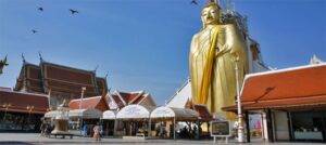 Si aún os quedan energías para más templos, podéis visitar el Wat Suthat (mi templo favorito) y uno de los templos reales más importantes pero que no atrae tanto al turista. Tiene una arquitectura muy bonita y una impresionante imagen de Buda sentado. Es uno de los templos que cierra más tarde y si vais por la noche estaréis muy tranquilos.