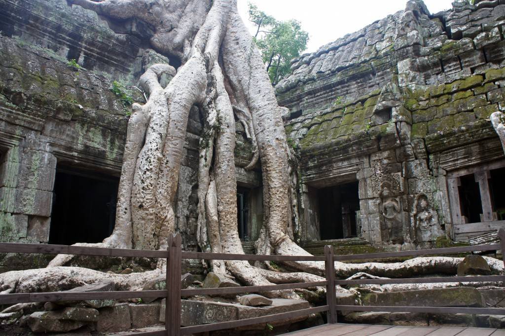 🌿 Ta Prohm: Conocido como el «Templo de la Selva», este enigmático lugar se ha convertido en una de las imágenes más representativas de Angkor, con sus muros entrelazados por raíces de árboles centenarios.