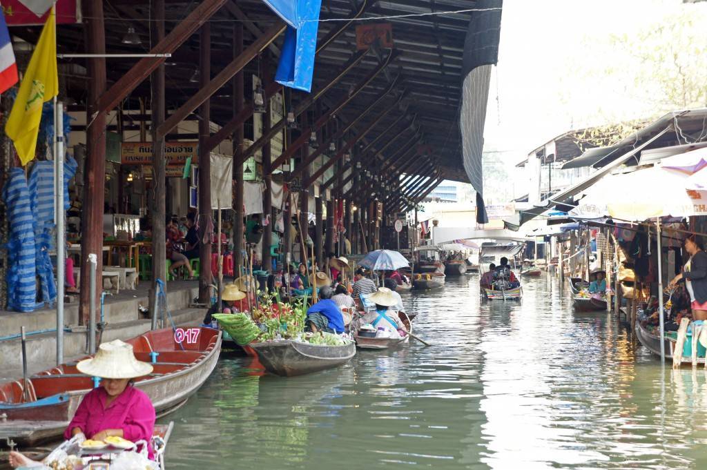 Recorre este mercado flotante tradicional en una barca a remo, disfrutando del bullicio de los vendedores locales que ofrecen frutas exóticas, souvenirs y delicias tailandesas desde sus pequeñas embarcaciones. Aunque hoy en día es un mercado más turístico, sigue siendo una ventana al pasado y una experiencia imperdible para cualquier viajero en Tailandia.