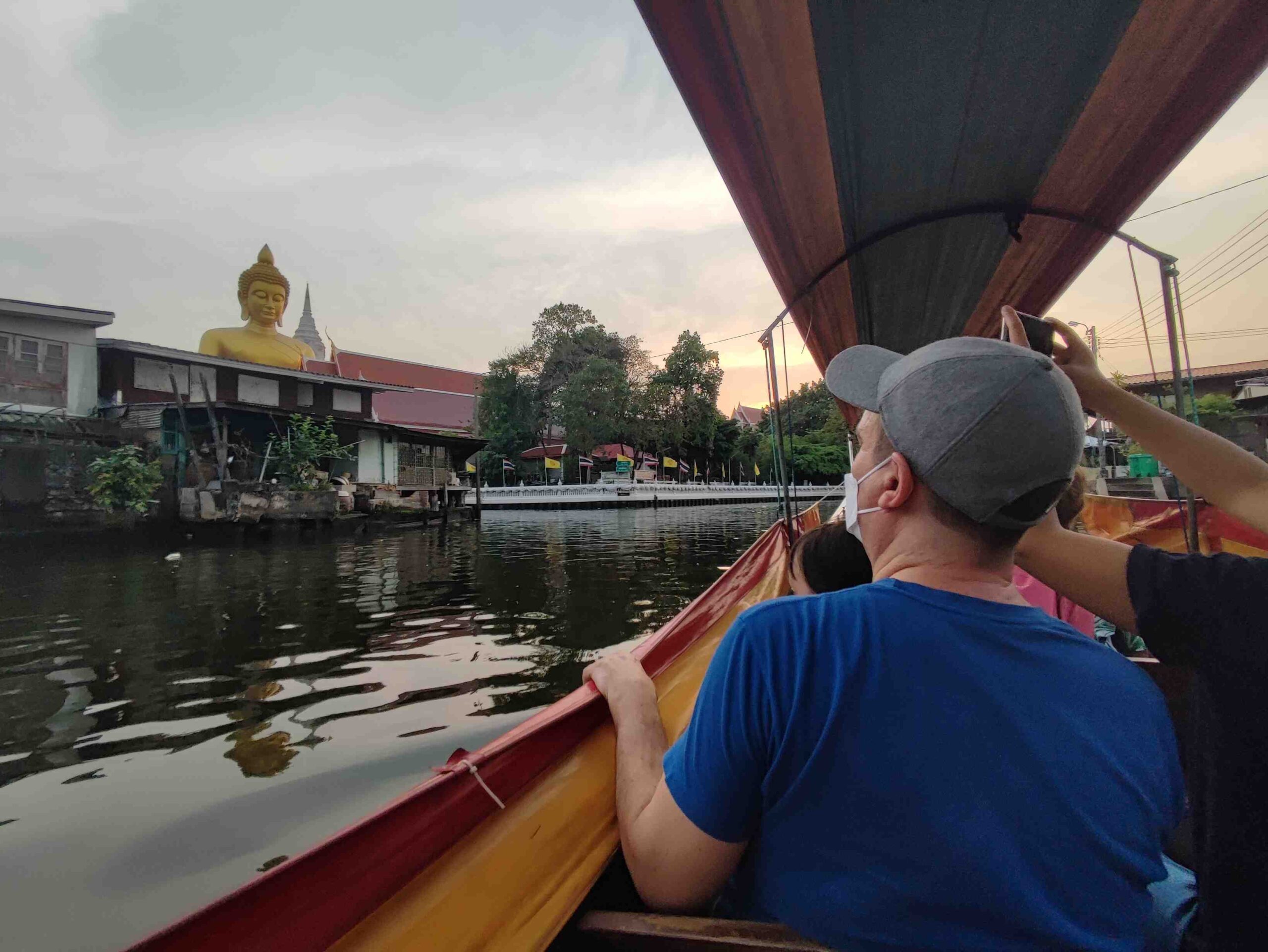 Para completar la experiencia, embarcaremos en una barca privada y navegaremos por los khlongs (canales) de Thonburi, una de las zonas más auténticas de Bangkok. Desde la barca, tendremos vistas privilegiadas de templos, casas tradicionales sobre pilotes y el famoso Wat Arun, el Templo del Amanecer.