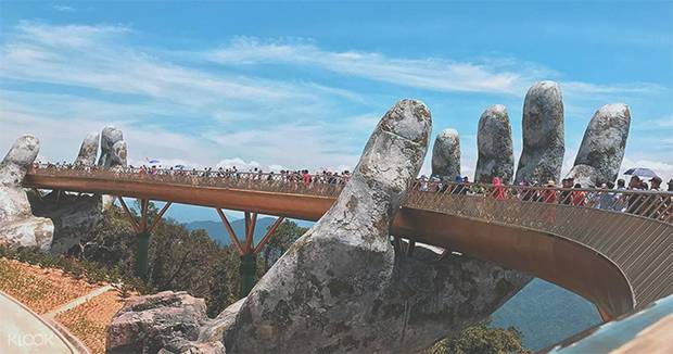 Las montañas de Bà Nà están en los alrededores de Da Nang. Son famosas por albergar el parque de atracciones para vietnamitas Ba Na Hills Resort. Este parque, a priori diseñado para el turismo local, se ha hecho muy famoso internacionalmente por el Puente Dorado (Golden Bridge), el puente suspendido por unas manos gigantes. Las imágenes de este puente se han hecho virales en internet. No es un puente antiguo (se construyó en 2018) ni con valor cultural. De hecho está construido con materiales más bien baratos pero su imagen ha dado la vuelta al mundo.